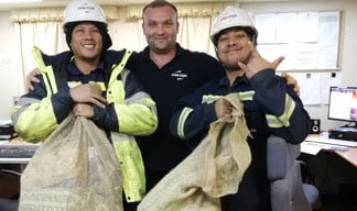 After giving out presents in late October to the standby vessels which may not be returning to Aberdeen before Christmas, distribution begins in December to the 'one-off' visiting ships, especially the cargo vessels.