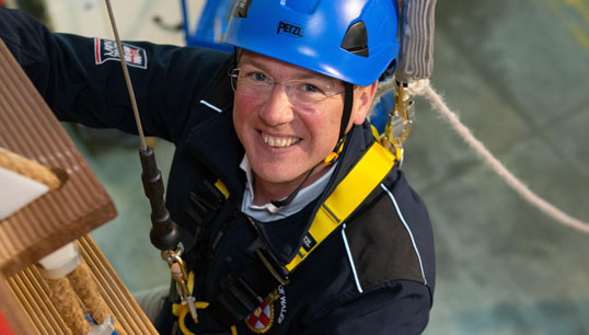 To mark this year's safety theme, Mr Courts climbed a ladder used by the Port of London Authority (PLA) to train employees who board commercial vessels, in all weathers, to ensure they have a safe passage up and down the Thames estuary.